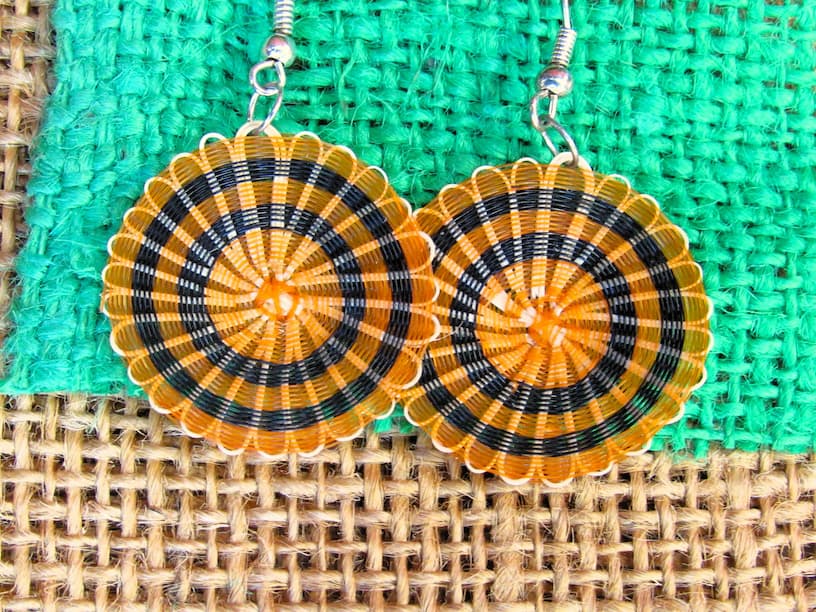 Aro de Crin color naranjo, trabajo hecho a mano por artesanos de Rari, región del Maule.